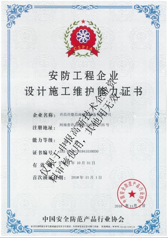 安防工程企業(yè)設(shè)計(jì)施工維護(hù)能力證書