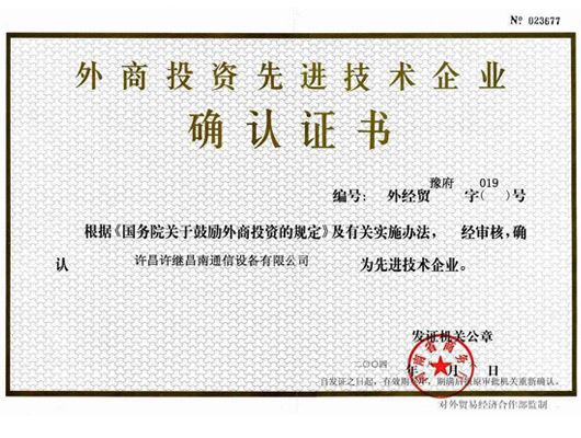 先進企業(yè)證書